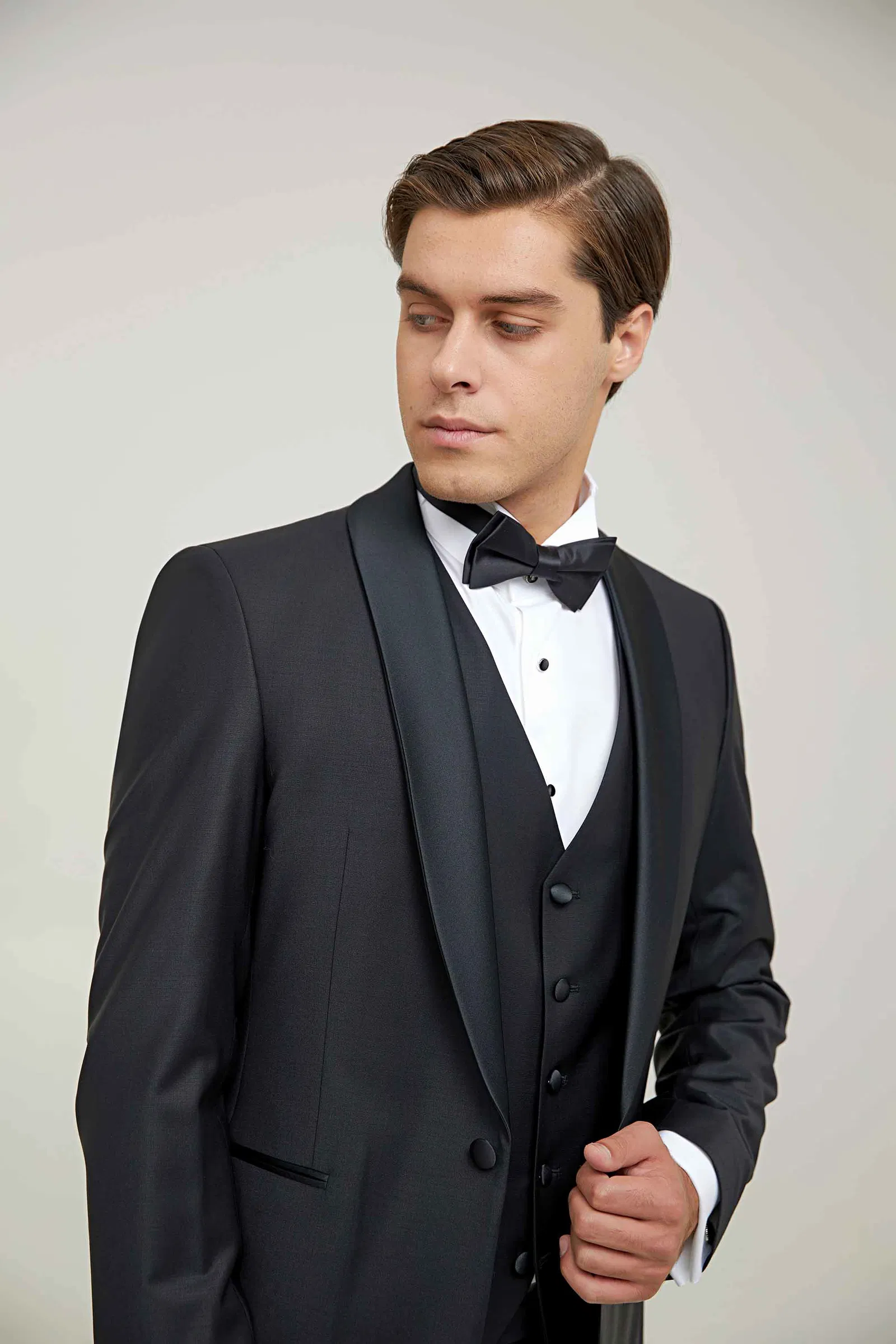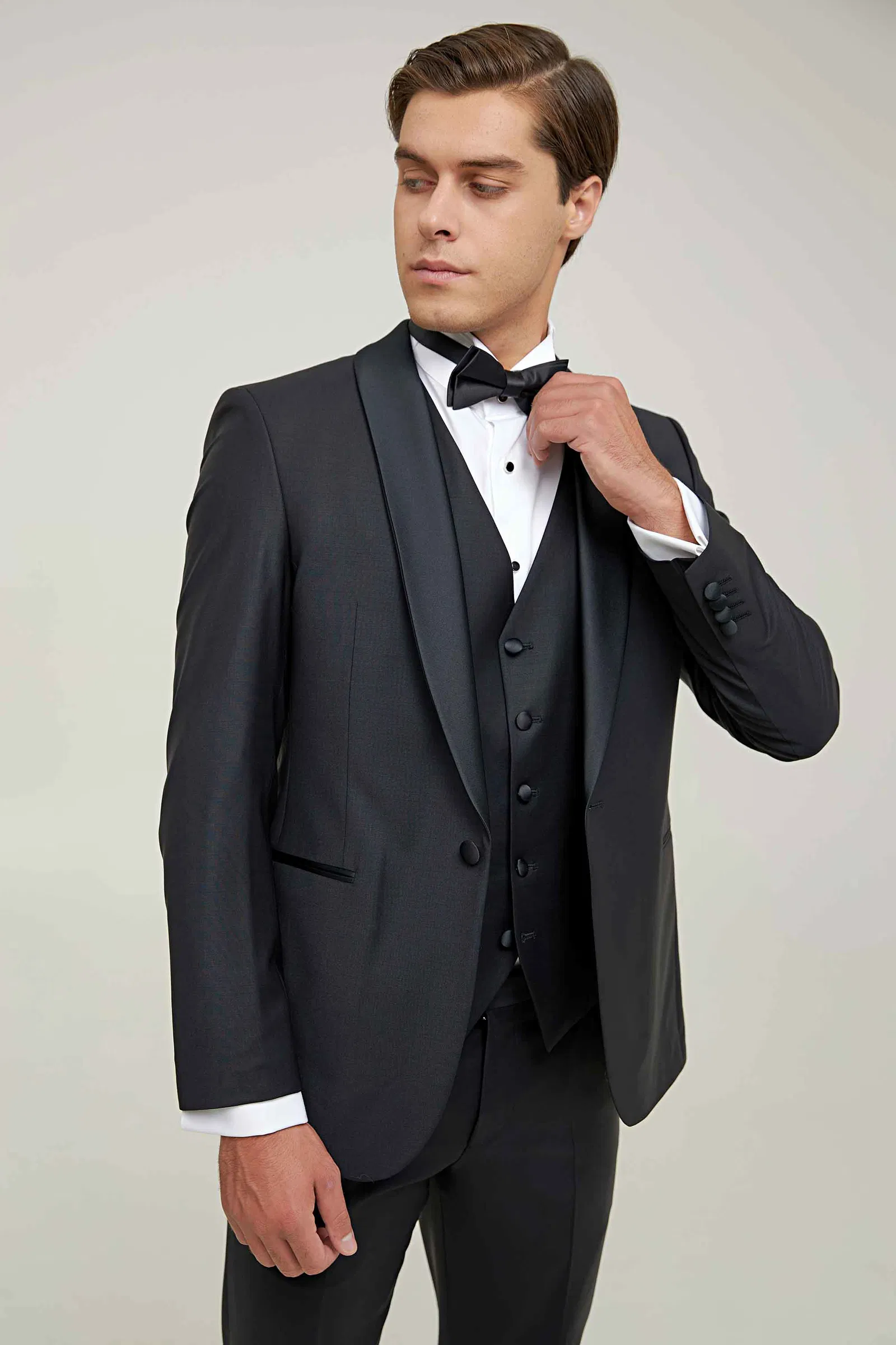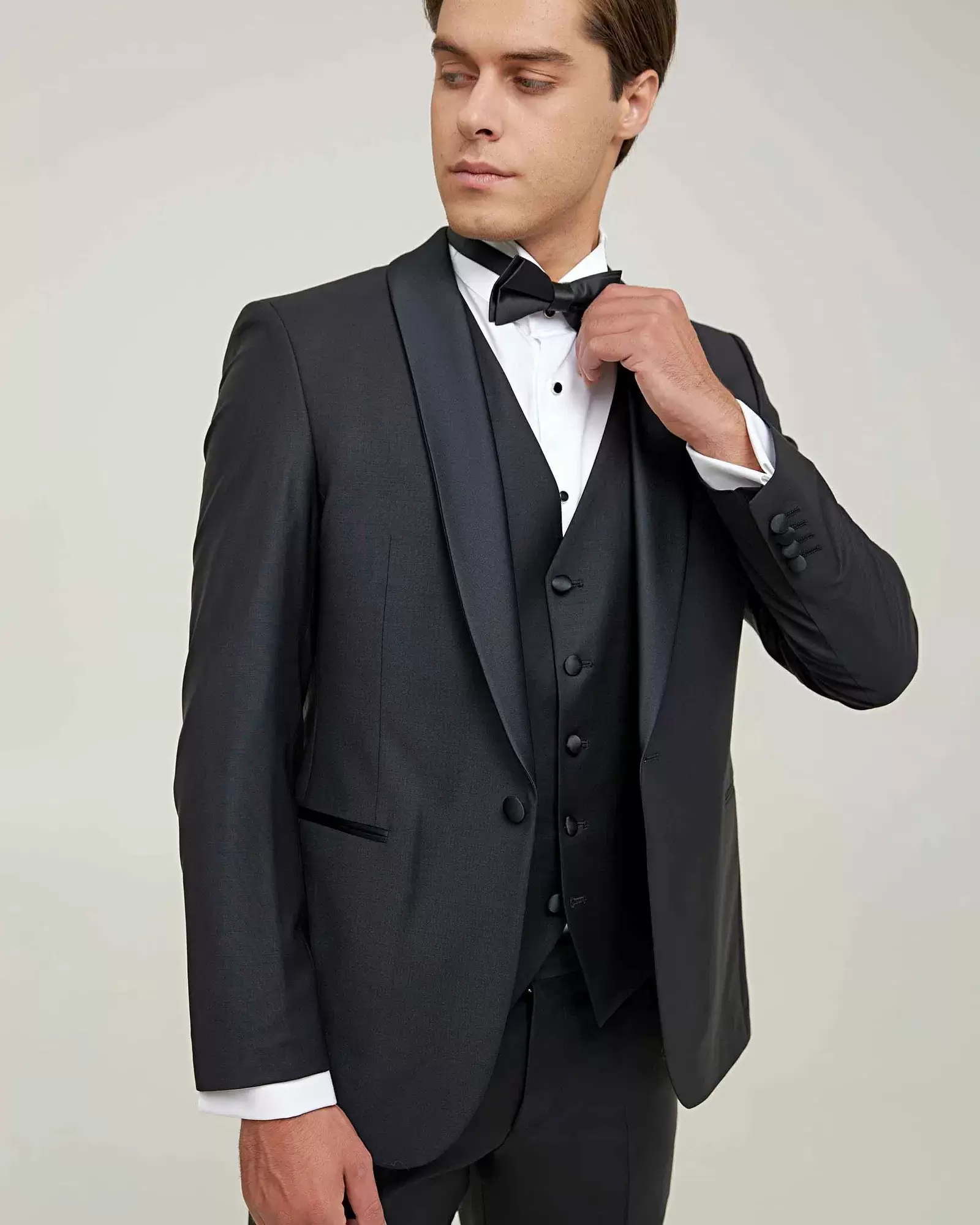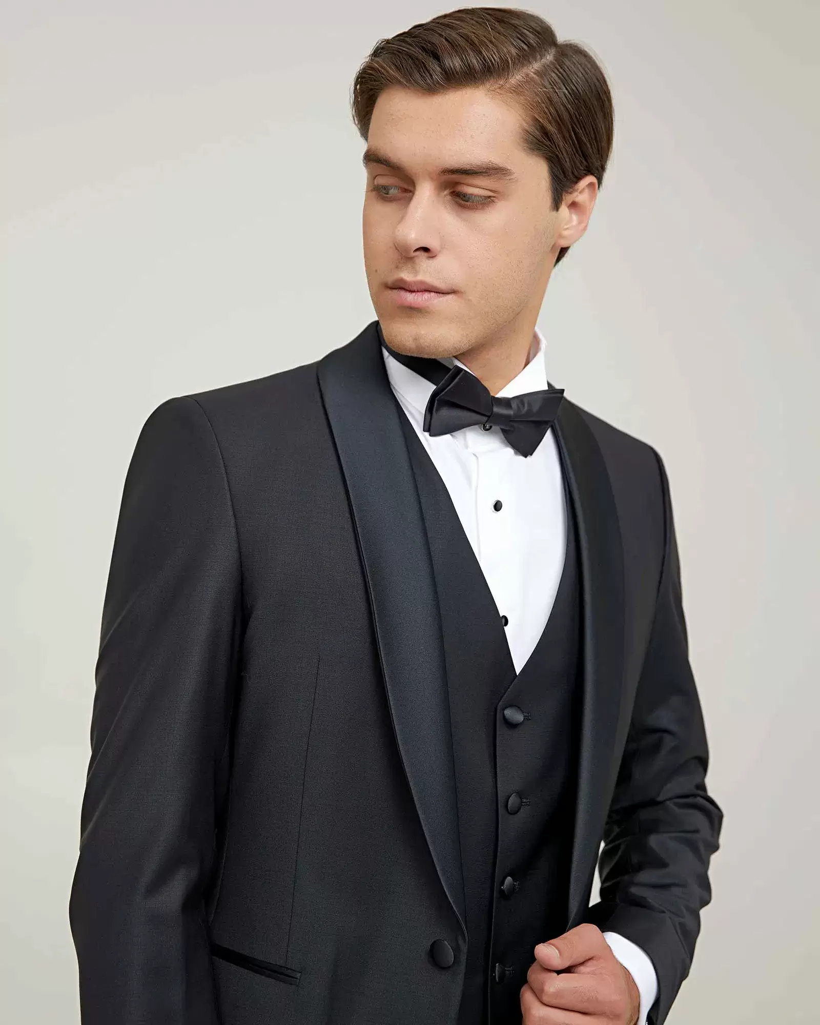 Damat Slim Fit Siyah Düz Damatlık & Takim Elbise Yelekli$350.00